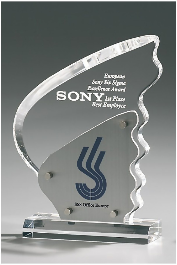 Eine gelungene Kombination von feingeschliffenem Metall und 18 mm starkem Acrylglas. Dieser Acrylaward gehört zur absoluten Spitzenklasse.