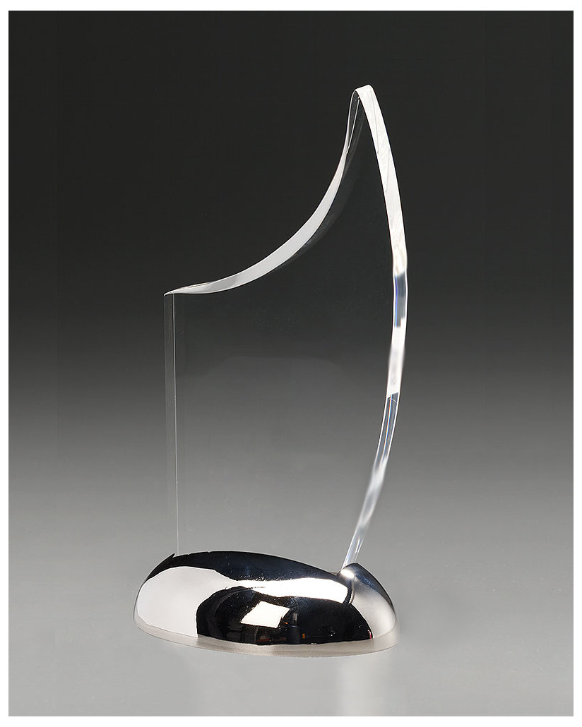 Atemberaubend geschwungen zeigt sich diese Acryltrophäe der Extraklasse. Gehalten von einem gewölbten, polierten Metallsockel, der die Extravaganz dieses Acrylawards unterstreicht. Top! Mit einer Lasergravur setzen Sie diese Acrylglastrophäe ins rechte Licht.
