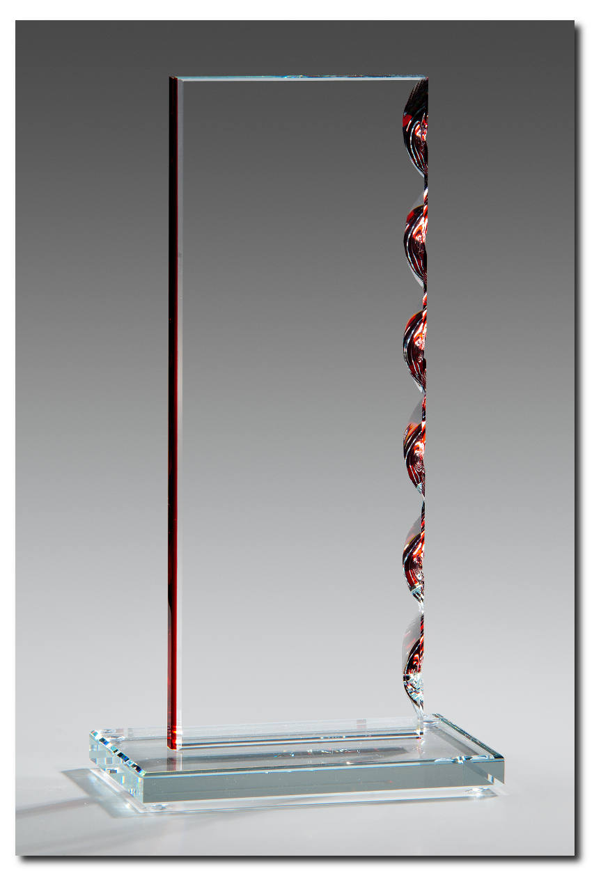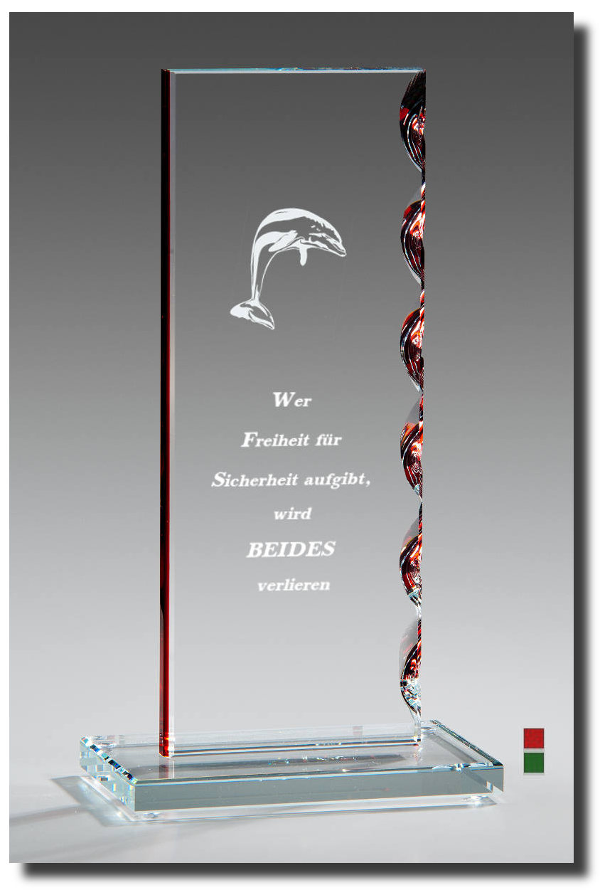 Glastrophäe mit Farbkanten aus GLAS in rot und grün mit seitlichem Muschelschliff. Die Glastrophäe kann mit einer Lasergravur und/oder UV-Druck versehen werden. Mit Barta Pokale stehen ihnen viele Beschriftungsmöglichkeiten wie Lasergravur, Sandstrahlgravur, hochwertiger UV-Druck sowie 3D Gravuren zur Verfügung. Lassen sie sich von uns beraten - wir helfen gerne.