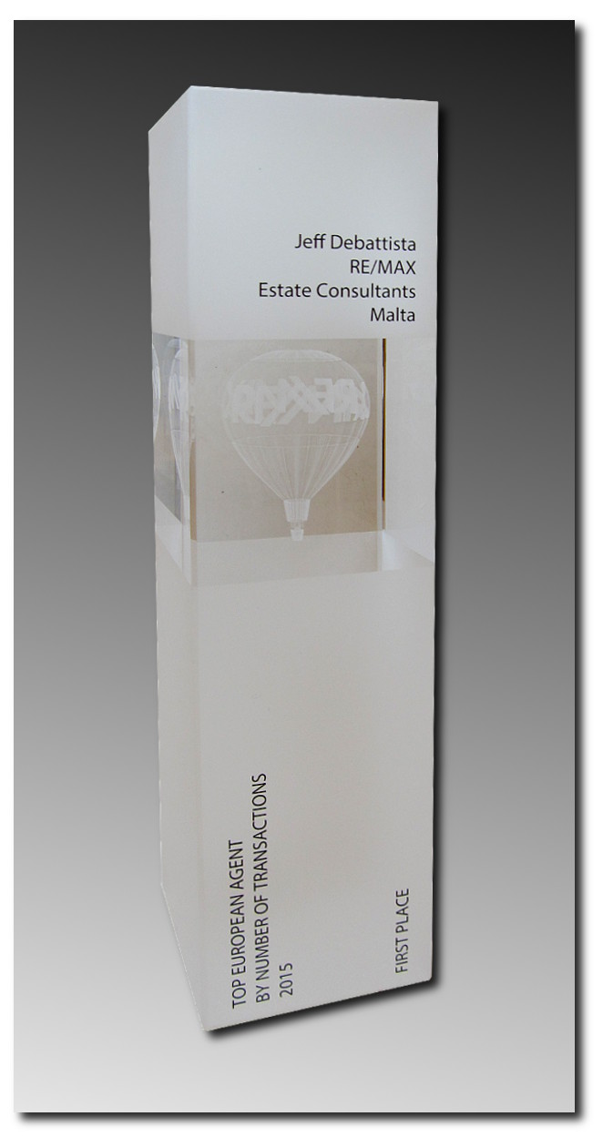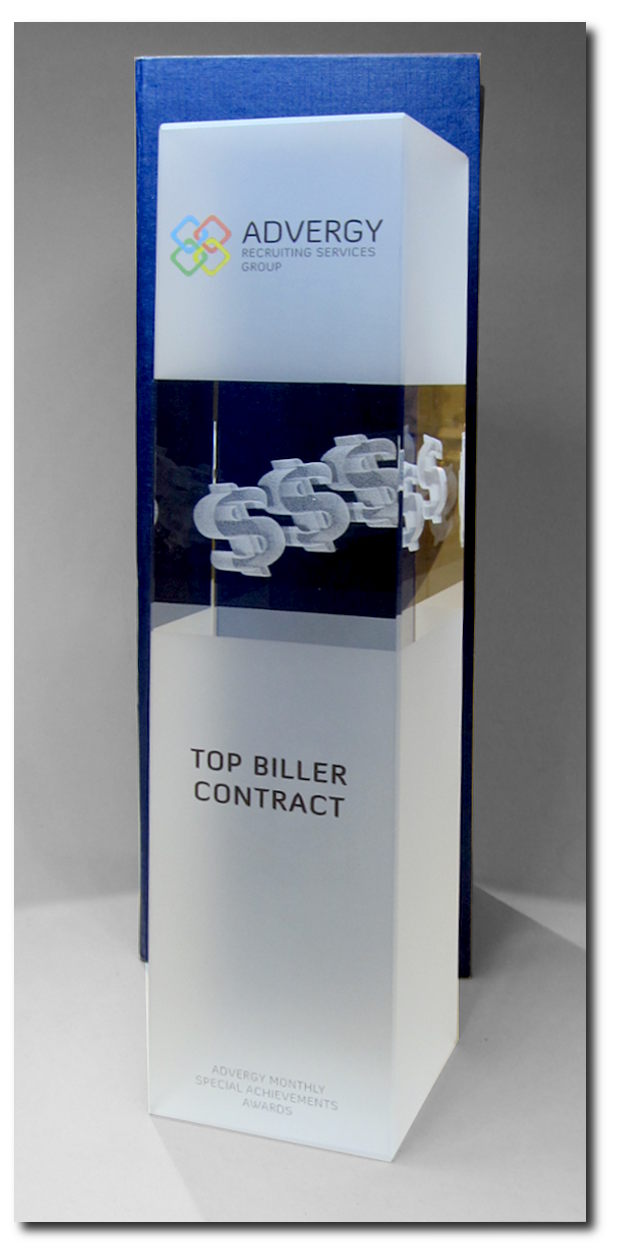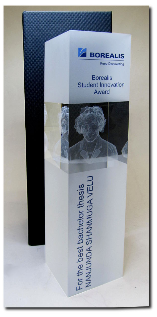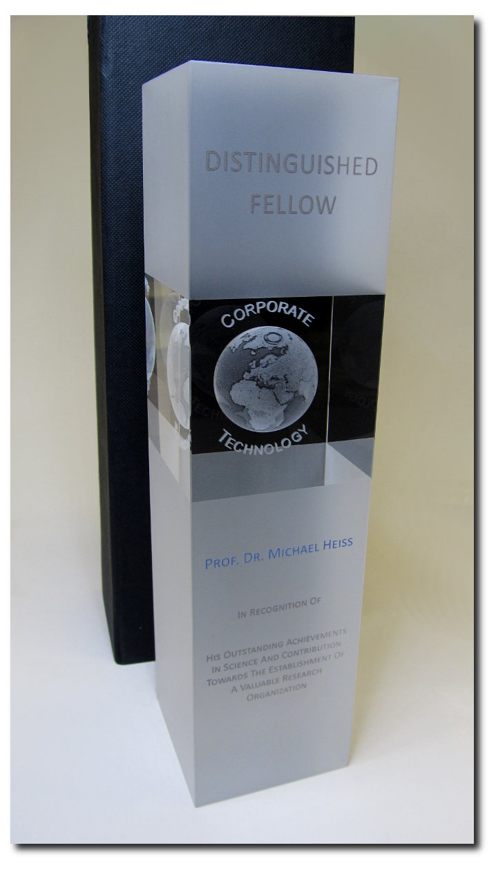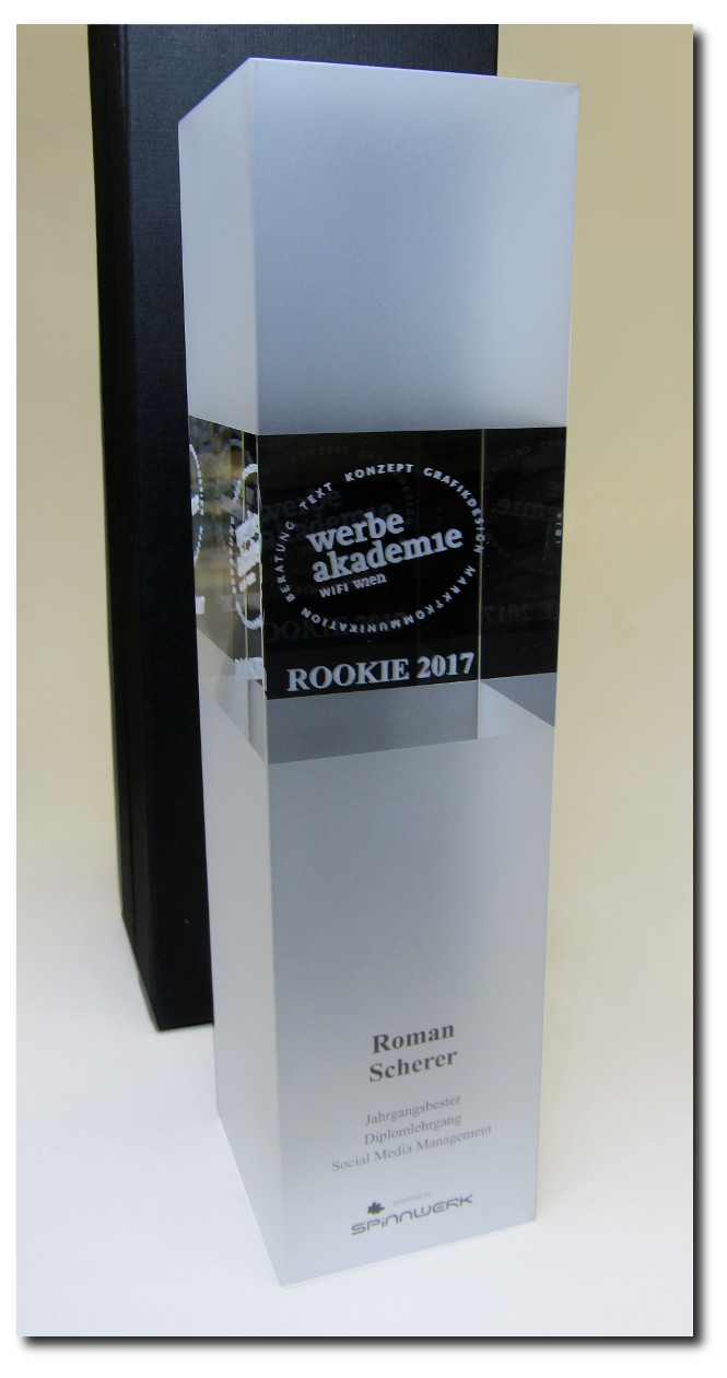 Glasaward mit 3D-Gravur und/oder UV-Druck möglich