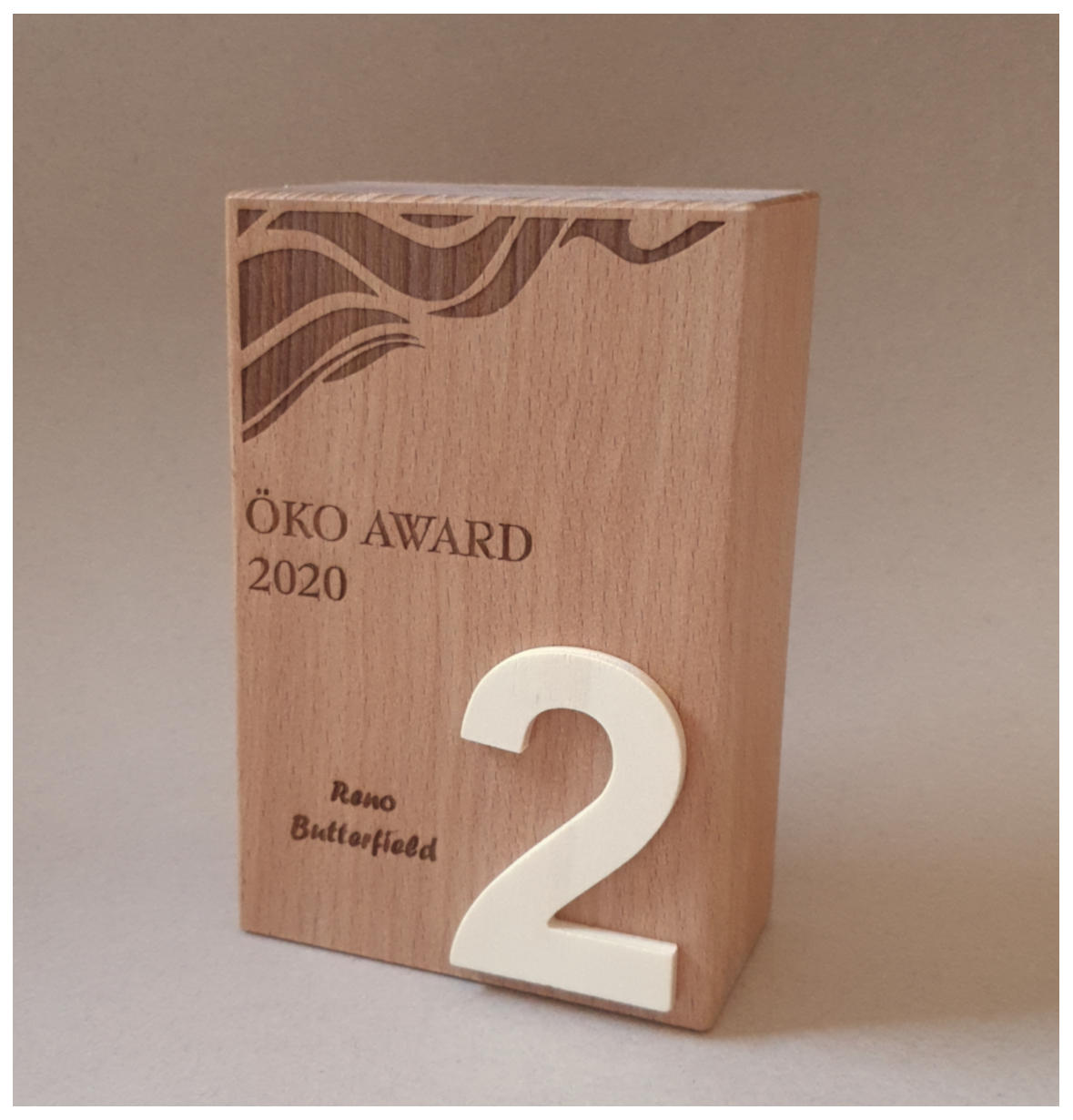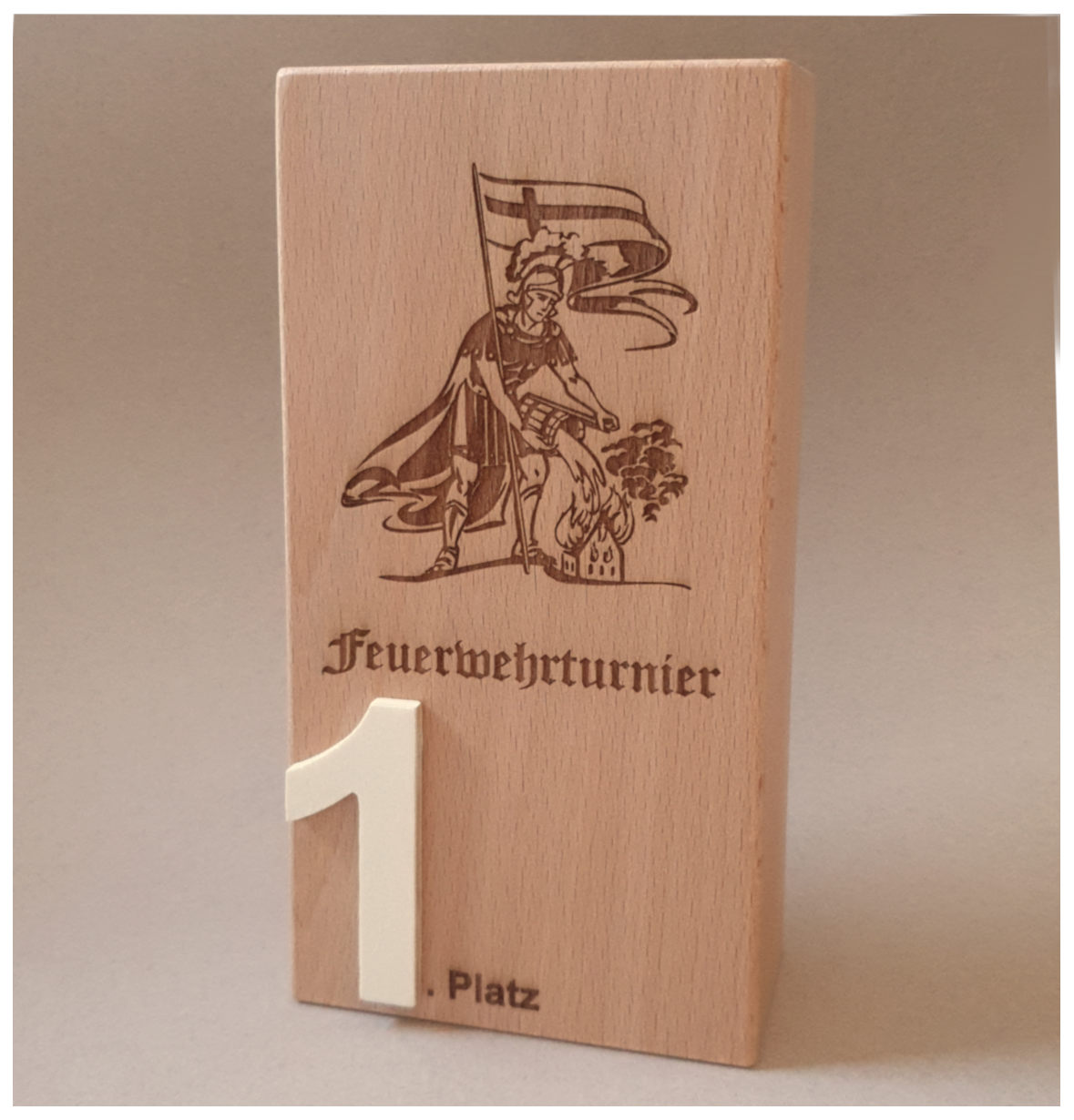 Schlichter Holzaward aus Buchenholz mit Ziffern aus Sperrholz, Höhe ca. 6 cm, Stärke 4 mm. Eine Trophäe aus Holz geeignet für viele Anlässe.