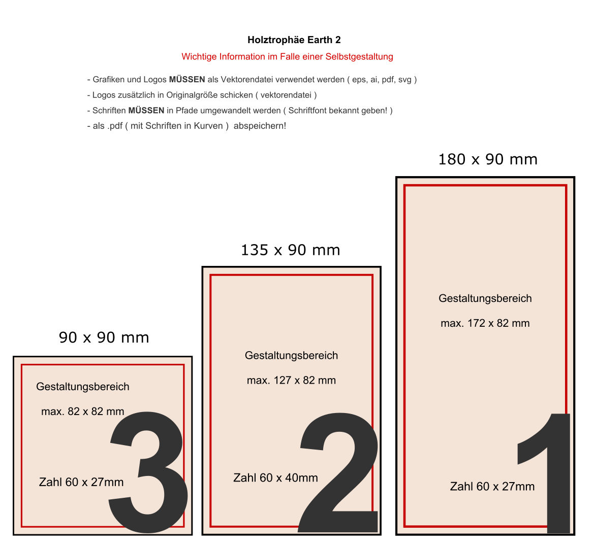 3 Größen, "Earth2 Holztrophäe" mit Ziffern