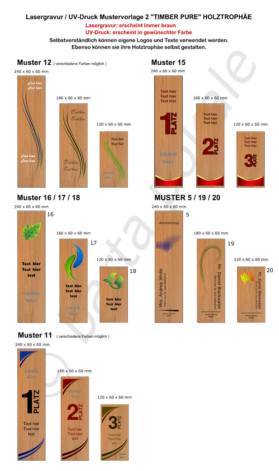 • Standard Logos sind im Gravur- bzw. Druckpreis inbegriffen.