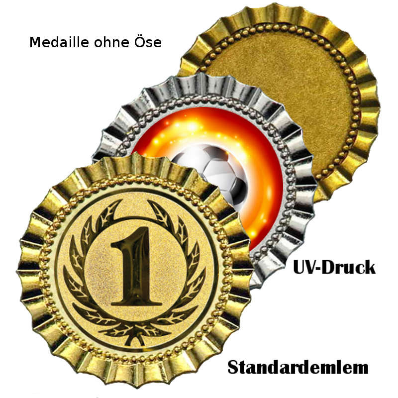 Embleme sind vorgefertigte Ronden (5cm und 2.5cm), die in Medaillen und Pokale mit Emblemhalter eingeklebt werden können.