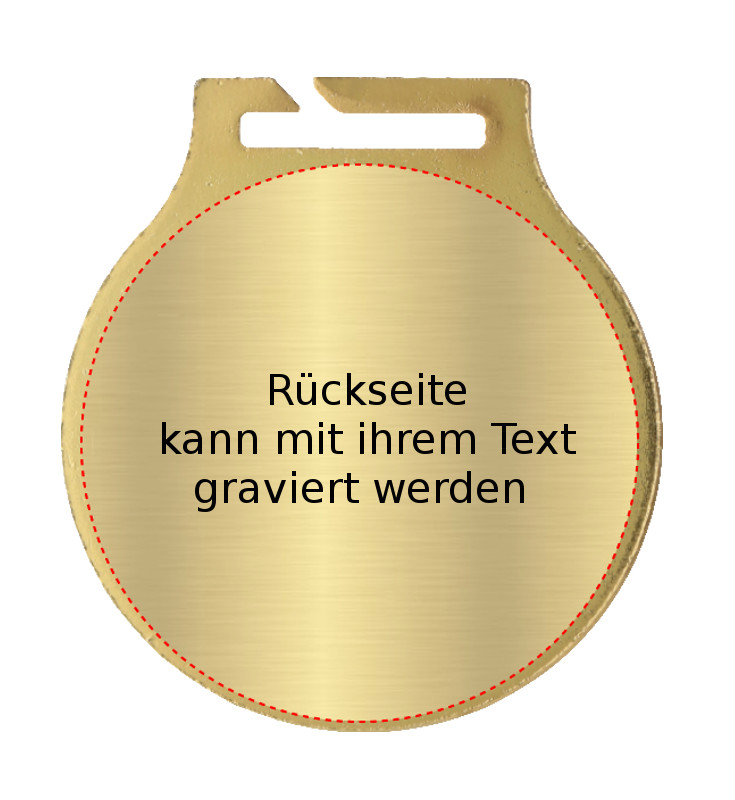 Moderne 5cm Medaille inkl. UV-Druck „Laufen“ und rotem Band. Die Rückseite kann mit Lasergravur auf dünner Kunststoffronde (gold/silber/bronze) veredelt werden