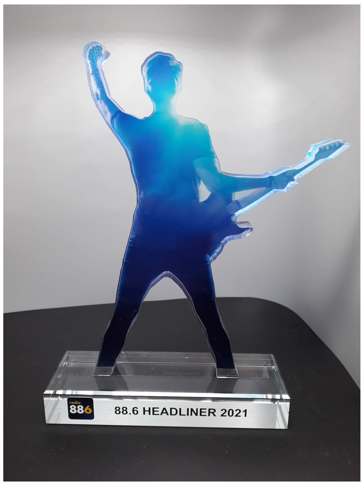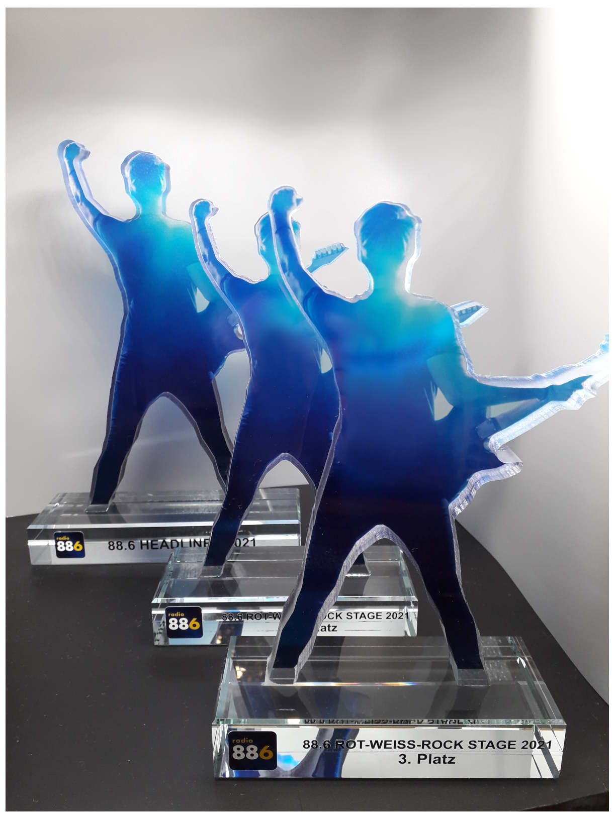 Für den "88.6 Rot-Weiß-Rock Stage Award 2021" produzierten wir Sonderanfertigungen aus Acryl und Glas.