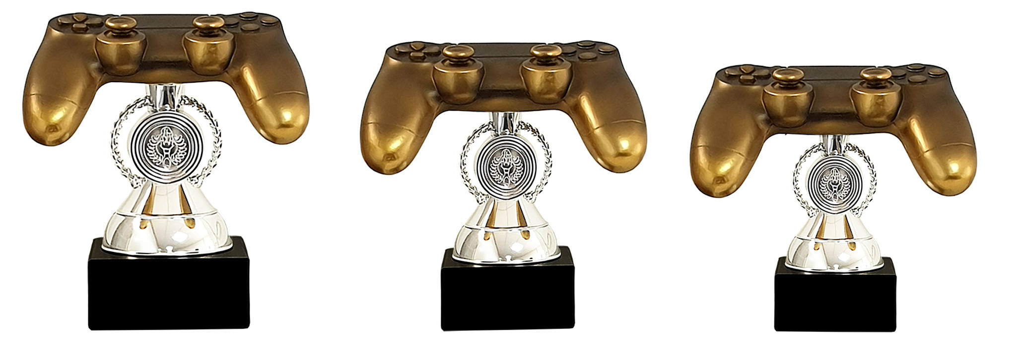 Game Controller aus Resin mit Platz für ein Emblem ihrer Wahl, montiert auf einem schwarzen Marmorsockel.